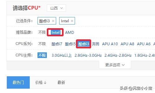 3、处理器CPU,这个是比较关键的,我们根据自己的需要选择是INTEL核心处理器还是AMD核心处理器,选择CPU系列,然后将自己喜欢的CPU添加到配置单中。现在的CPU通常有盒装和散装的区别,建议大家选择盒装的CPU。