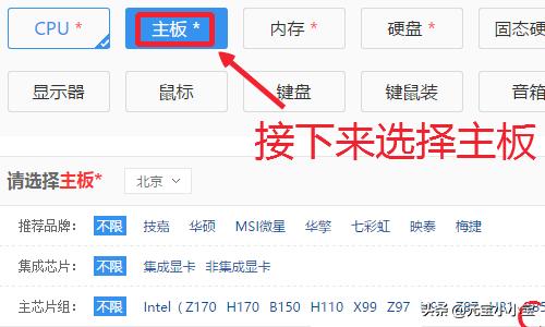 4、将CPU加入配置单以后,接下来选择主板,这样一个一个的进行设置和选择。