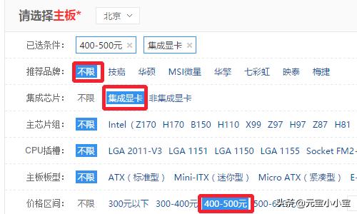5、主板这里大家要决定是购买集成显卡的主板还是非集成主板显卡,如果主板集成了显卡,这样我们后面就可以省略购买独立显卡的开支,如果平时不完大游戏,家用办公等,我们选择集成显卡的主板就可以了,应该够我们自己平时使用的,小编见过很多人,自己根本不完什么网络游戏,非要购买独立显卡的主板,增加开支。
