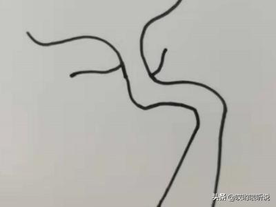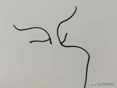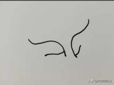 3、第三步,按照上两步的画法,我们在与之相对的右边,也是同样的画上一条较长的曲线,然后在右下方画上一个稍微短点的曲线,如下图所示。
