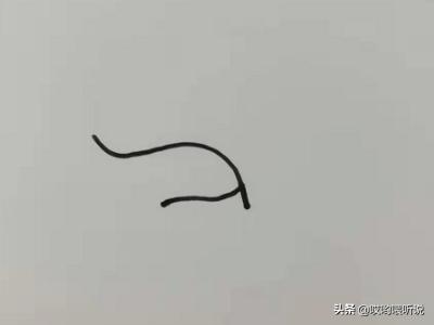 2、第二步,在刚刚画好的曲线的左下方,我们再画上一条短的曲线,如下图所示。