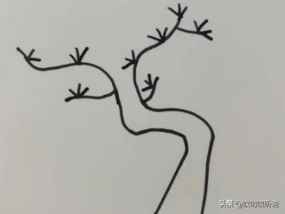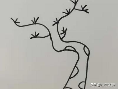 2、继续画出松树的枝干,将松针都串联起来,树干要弯曲苍劲,简单的松树就画出来了。