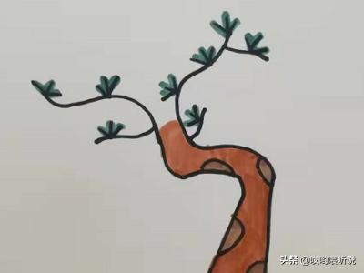 8、最后一步,就是给松树涂上颜色,松针是绿色,树干是棕色,大家可以根据自己的喜好,自由发挥,最终的效果图如下,供大家参考一下。