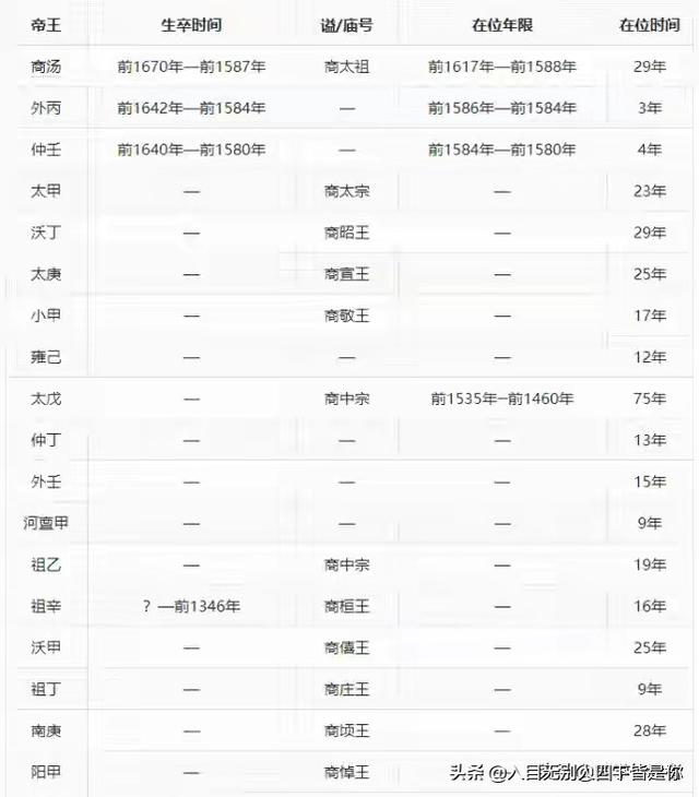 商朝共有31位皇帝,分别是:汤、太丁、外丙、仲壬、太甲、沃丁、太庚、小甲、雍己、太戊、中丁、外壬、河亶甲、祖乙、祖辛、沃甲、祖丁、南庚、阳甲、盘庚、小辛、小乙、武丁、祖庚、祖甲、廪辛、康丁、武乙、文丁、帝乙、帝辛 。