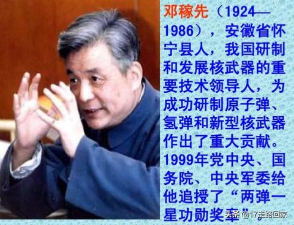 邓稼先是中国核武器理论研究工作的奠基者之一。 是中国核武器研制与发展的主要组织者、领导者,被称为"两弹元勋"。完成了原子弹的理论方案,并参与指导核试验的爆轰模拟试验。