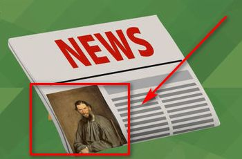 3.再找出一张印有历史名人头像的报纸,沿着头像剪裁下来,再用胶水粘贴到卡纸片上。