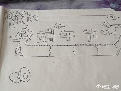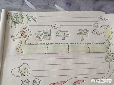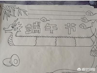 3、手抄报的中间画一个男孩抱着一蒸笼粽子,男孩两侧画简单花边。