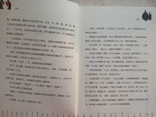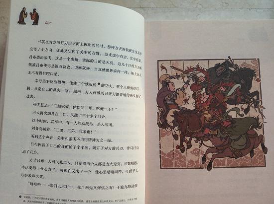 《三国演义》是我国古代经典四大名著之一。如果要读经典、学知识、鉴赏文学的话,《三国演义》这部巨著无疑是必读书目。目前图书市场上根据《三国演义》原著演绎而来的版本众多,但如果要挑选一个适合孩子的版本实属不易。我曾为四年级的儿子买过一套青少版的《三国演义》,那套《三国演义》在原版基础上进行了缩减和改编,改编后的内容比较适合小学高年级的孩子阅读。那套《三国演义》以“历史事件”为线索,用平铺直叙的语言介绍了比较著名的事件和人物。尽管我儿子按部就班地“啃”完了那套《三国演义》,但我却觉得孩子并没有完全体会到书中著名战役的惊心动魄,也没有为哪个英雄人物的命运唏嘘或感慨,貌似他没有融入到故事情节之中。