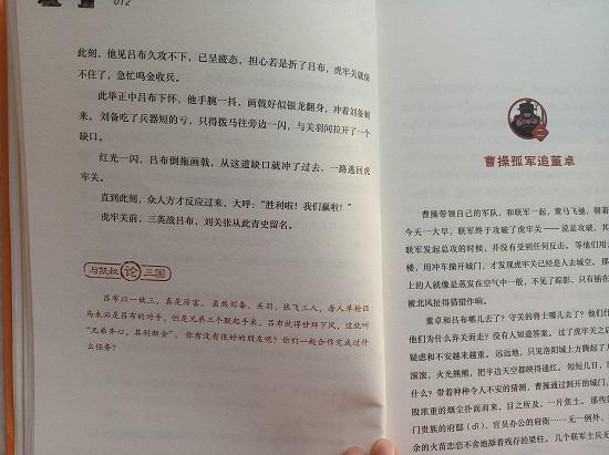 另外,凯叔版《三国演义》除了读起来有意思、有趣味外,书后的“三国博物学”栏目中介绍了许多三国时期的知识。例如:三国时代有机器人吗?三国时代有游泳圈吗?为什么古人的名字不能随便叫?如果你是小兵,你会安营扎寨吗等等诸多历史小知识,有助于更好地满足孩子们对知识的渴求。