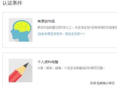 4、这里有两个认证的条件!一个完善详细的个人资料,另一个则是上传5个原创作品