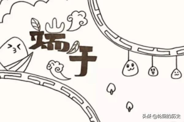 4、在主题的旁边画出一个粽子给它加上表情,用波浪线画出主题上方的云朵。