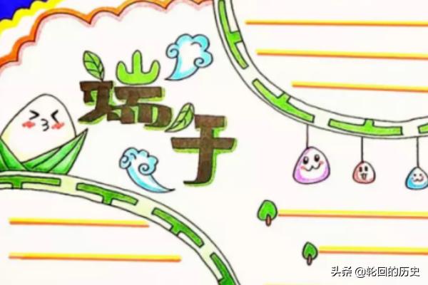 5、在主题的旁边也画上两片云朵,用可爱的小粽子装饰一下文字框的下方。