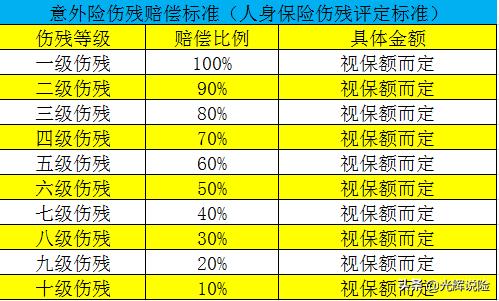 比如买了100万保额的意外险,不幸发生意外导致残疾,评定为4级伤残,赔保额的70%,也就是可以得到70万的赔偿。