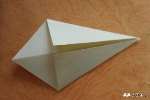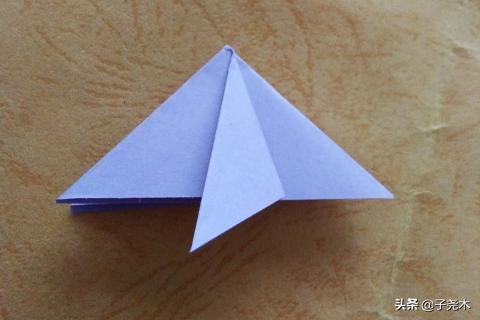 1、将正方形折纸其中的两个角对折,形成一条中心线,将右边角的两边分别向内折,再向内折一次,然后往外折;