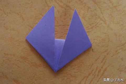 2、把左右两个角分别向上折,倾斜着折,两个耳朵之间要有空隙。最后用笔画上狐狸的眼睛和鼻子。