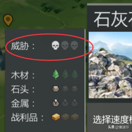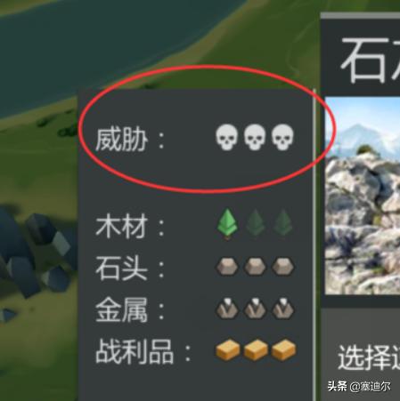 5、外面的地图有威胁等级,前期建议去1级威胁的地图,如图这样的一个骷髅。里面的怪不多,伤害低,血量少,很容易打。