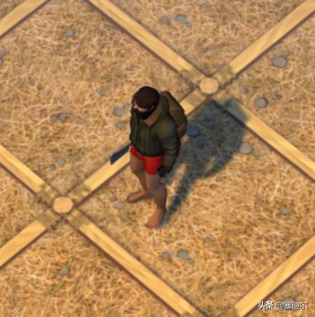 4、然后把出生地的敌人和动物,还有一些资源采集一下,接着我们建造一座基地,用木头铺在地面,随便铺几块,然后就可以去外面地图探索了。