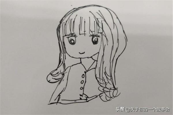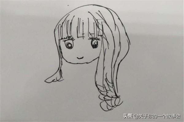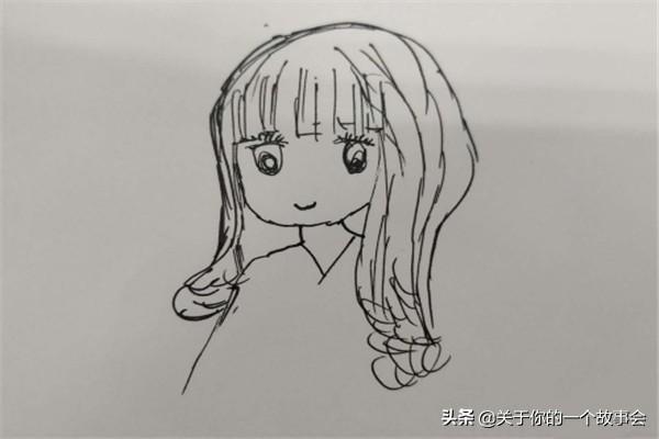 首先,我们来画小女孩飘逸的头发,是弯弯曲曲的烫染的头发。我们给大致勾勒出脸部,如下图