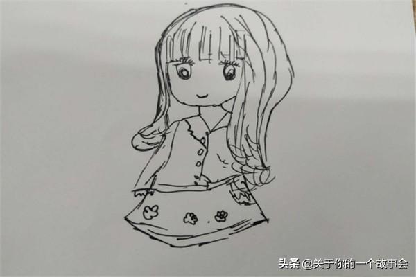 最后我们给小女孩画好裙子后,再添加几朵小花,也可以不添加。如下图接下来就可以给小女孩涂颜色啦!