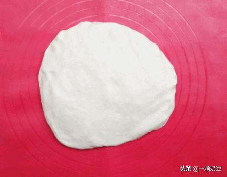 5、把发酵好的面团放在揉面垫上,按压排气。