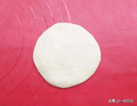 7、取一个松弛好的面团,用擀面杖擀圆。