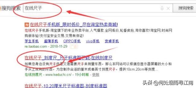 百度输入在线尺子:在百度输入在线尺子,点击搜索就可以看到有一个在线尺子,点进去,可以看到屏幕上有一把刻度尺。
