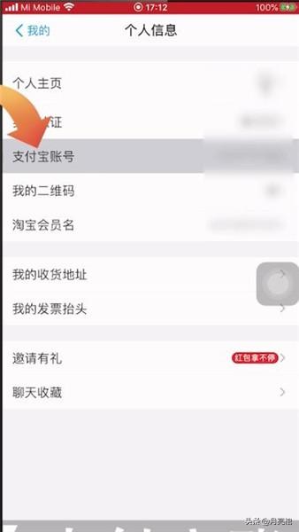 2、再进入【个人信息】界面,再点击【支付宝账号】选项,此时就可以看到支付宝账号了。