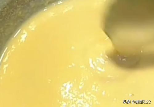 4、稀释后倒入调好的玉米面糊中,搅拌均匀后,醒20分钟;