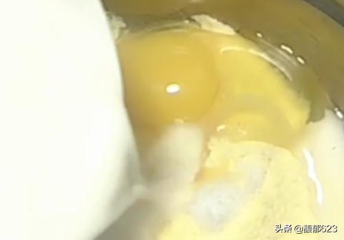 1、准备适量的玉米面,打入一个鸡蛋;