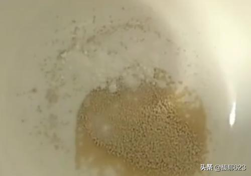 3、准备3g酵母,少许的小苏打,用温水稀释;