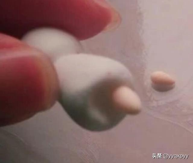 1.首先用白色的黏土做一个小球和一个上小下大的圆柱体,两个拼接起来做一个身体