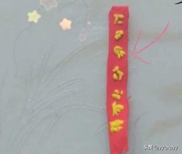 8.用黄色的黏土随意粘贴一些黄色的图案,做围巾