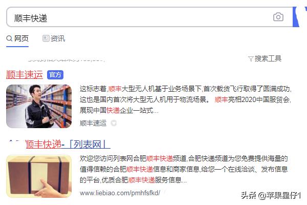 2、在搜索结果中选择顺丰快递官网,点击进入。