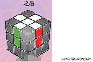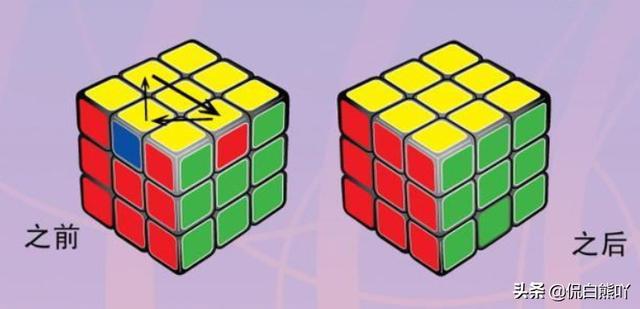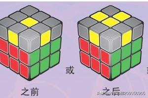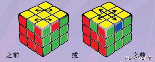 9、第九步,通常这时候黄色块,和侧面的颜色会有错位产生,根据口诀将四角的黄色块定位。