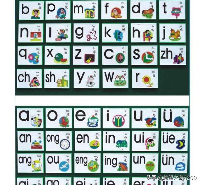 1、单韵母:6个 a(阿)、o(哦)、e(鹅)、i(衣)、u(乌)、ü(鱼