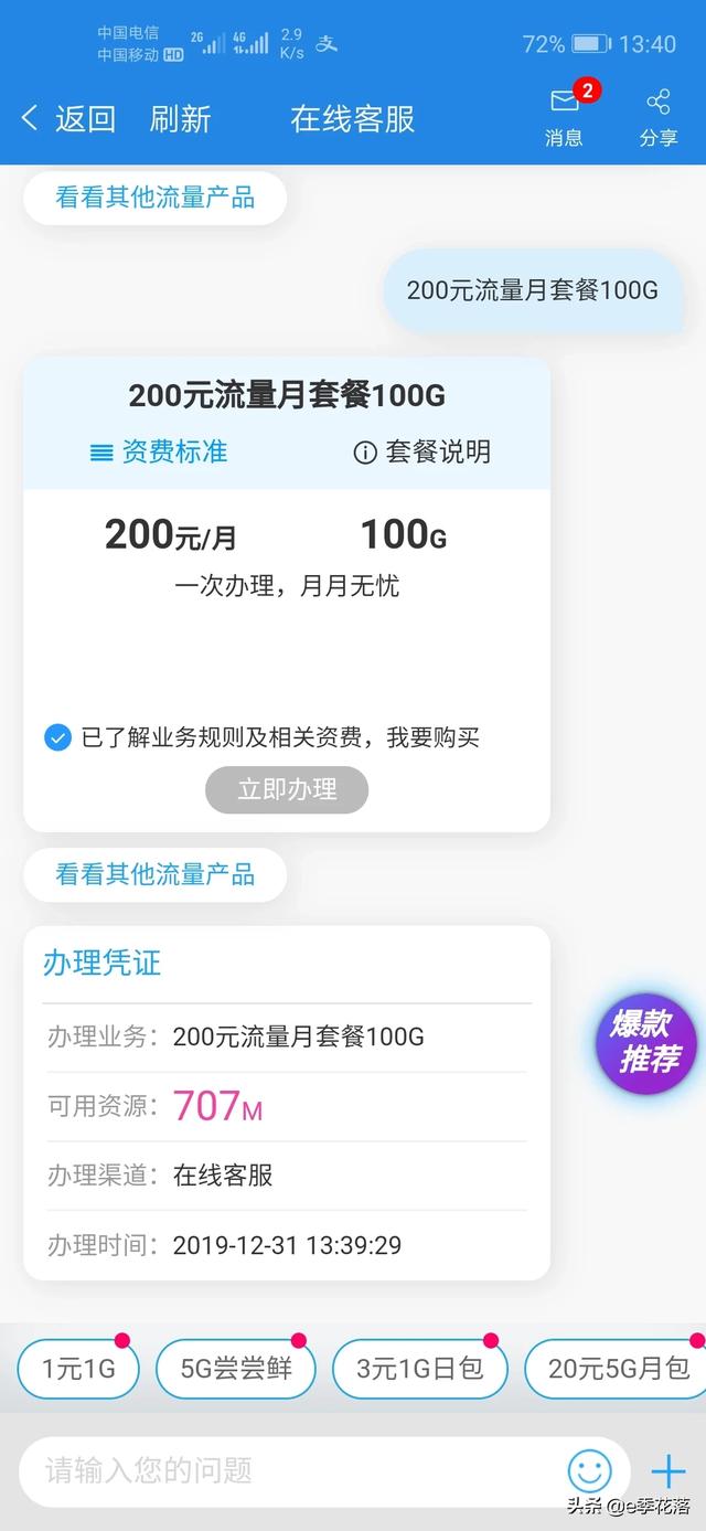 我是2019年12月31日在移动APP上买了200元100GB的流量包,2019年1月10日短信通知说:流量包将在2019年1月14日结束,买的时候看了流量包有效日期是:2019年2月13日结束,移动就是强盗行为!希望万能的头条,能给个有效的投诉电话,好好治理治理移动的霸王条款!