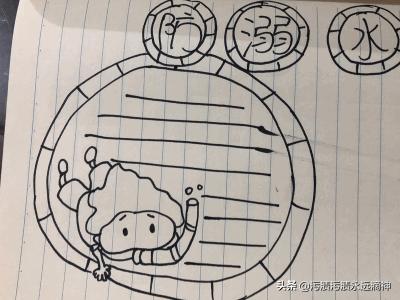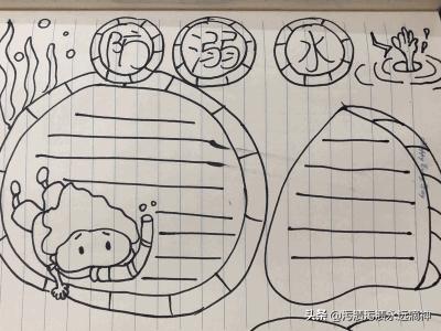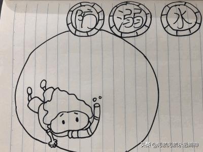 2.画出一个圆形比作池塘,再画出一个小孩游泳的画面。