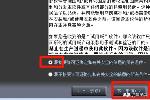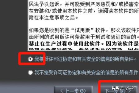 5、选择我接受许可证定和有关安全的信息的所有条件。点击下一步。