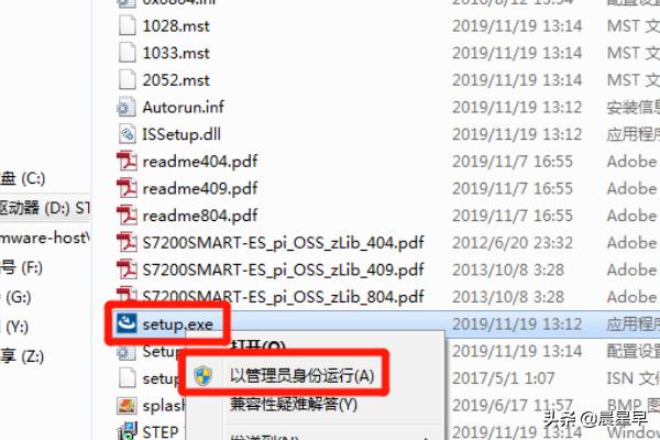 2、软件下载完成后,解压缩文件。打开安装包文件夹路径,右键点击setup.ext以管理员身份运行。