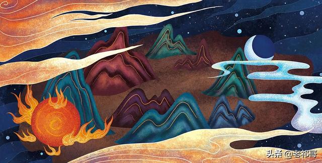 终于天稳地固,不会重新复合了,但这位开天辟地的英雄已经筋疲力尽,再也没有力气支撑自己,他巨大的身躯轰然倒地。
