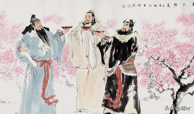 扩展资料:桃园三结义最初是小说《三国演义》里记载的故事,述说当年刘备、关羽和张飞三位仁人志士,为了共同干一番大事业的目标,意气相投,言行相依,选在一个桃花盛开的季节、选在一个桃花绚烂的园林,举酒结义,对天盟誓,有苦同受,有难同当,有福同享,共同实现自己人生的美好理想。