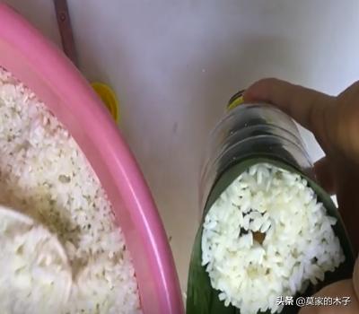 第五步 ,再把准备好的糯米和馅料放进粽叶里