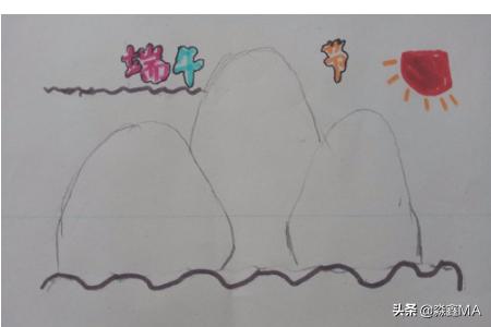 6、在粽子身上画横线,用来写端午节习俗,节日起源等内容。