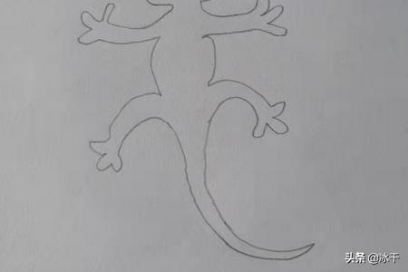 3、然后勾画出小壁虎做出的两只爪子。
