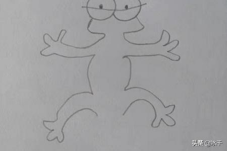 2、接着画出小壁虎的头部的弧线。